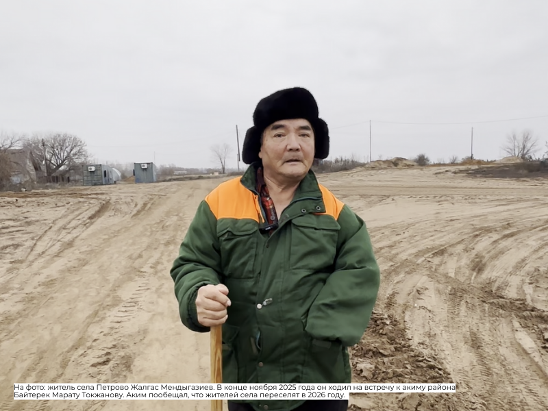 Позже, в ноябре 2025 года, житель Петрово Жалгас Мендыгазиев сообщил журналистам, что аким района Байтерек Марат Токжанов на личном приёме пообещал петровцам, что их переселение запланировано на 2026 год.