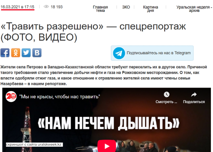 Более десяти лет жители села Петрово просят переселить их подальше от Рожковского месторождения, где добывают газ. По мнению независимых экологов, власти ограничиваются разовыми проверками и формальным соблюдением норм, потому что не воспринимают ситуацию всерьёз. Экоактивисты настоятельно советуют оператору месторождения и местным акиматам обратить внимание на жалобы жителей об ухудшении экологии и просьбы о переселении, пока не произошла трагедия с массовым отравлением, которая когда-то уже случилась в ЗКО, в селе Берёзовке.
